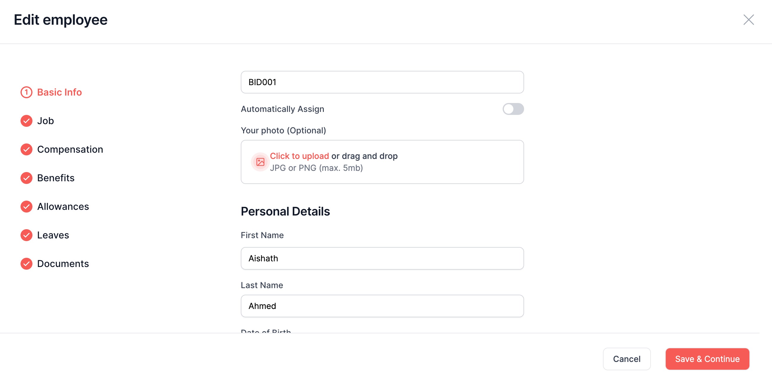 Job Details: Hiring reason, Designation, Unit, Supervisor, Worksite, Employee Type, Employment type, Start Date