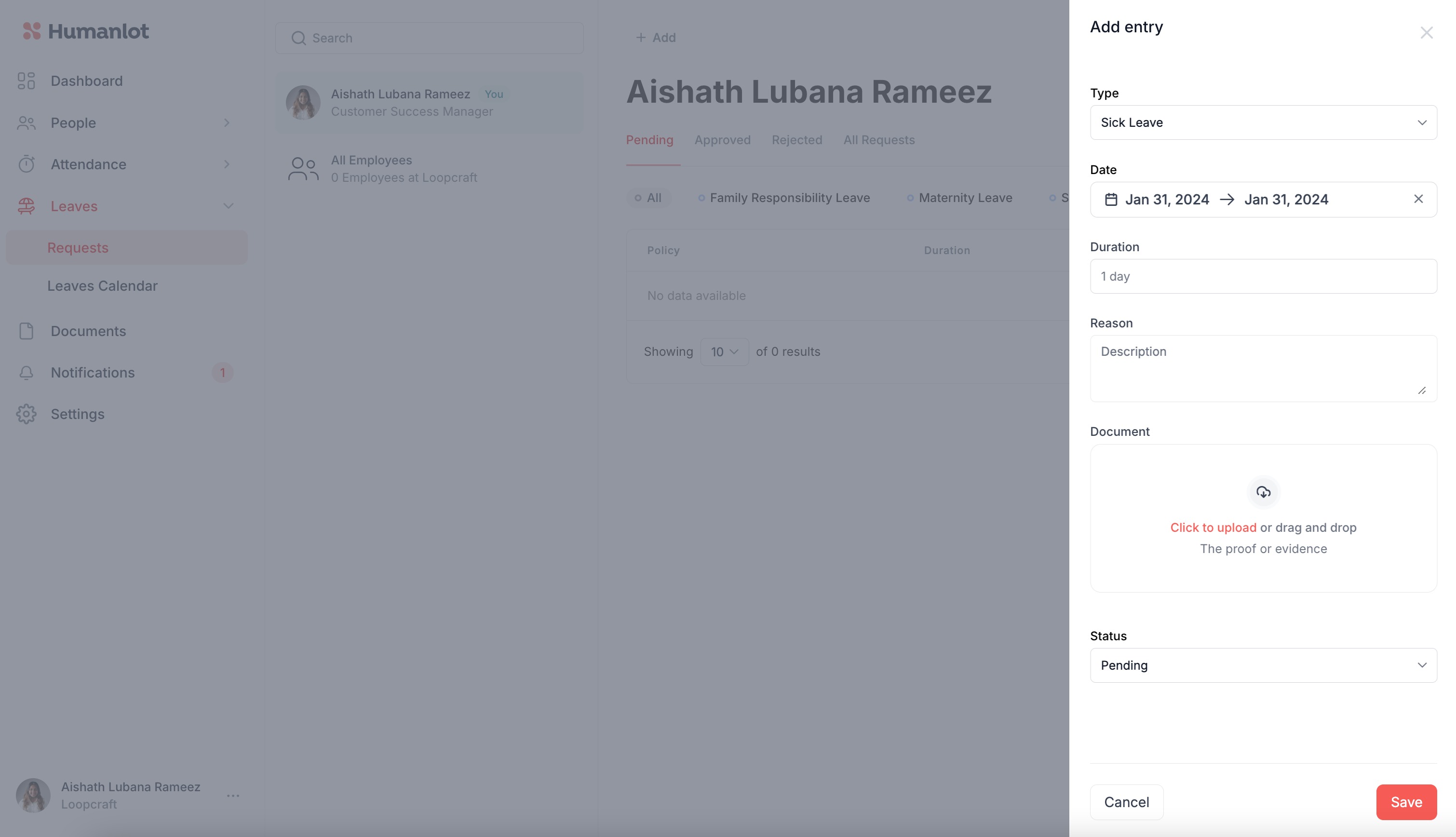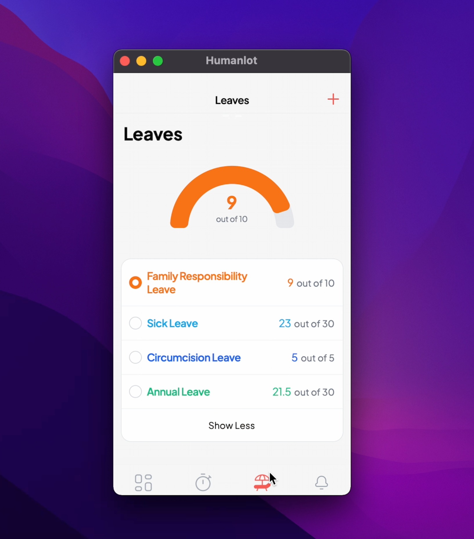 Now simply select the leave type. You’ll be able to see all the leaves you’re eligible for.