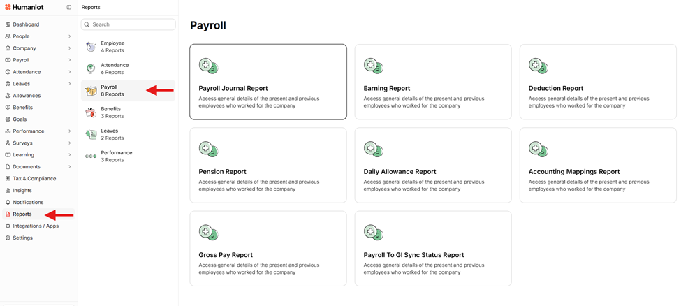 Select the type of Payroll report you want to generate.