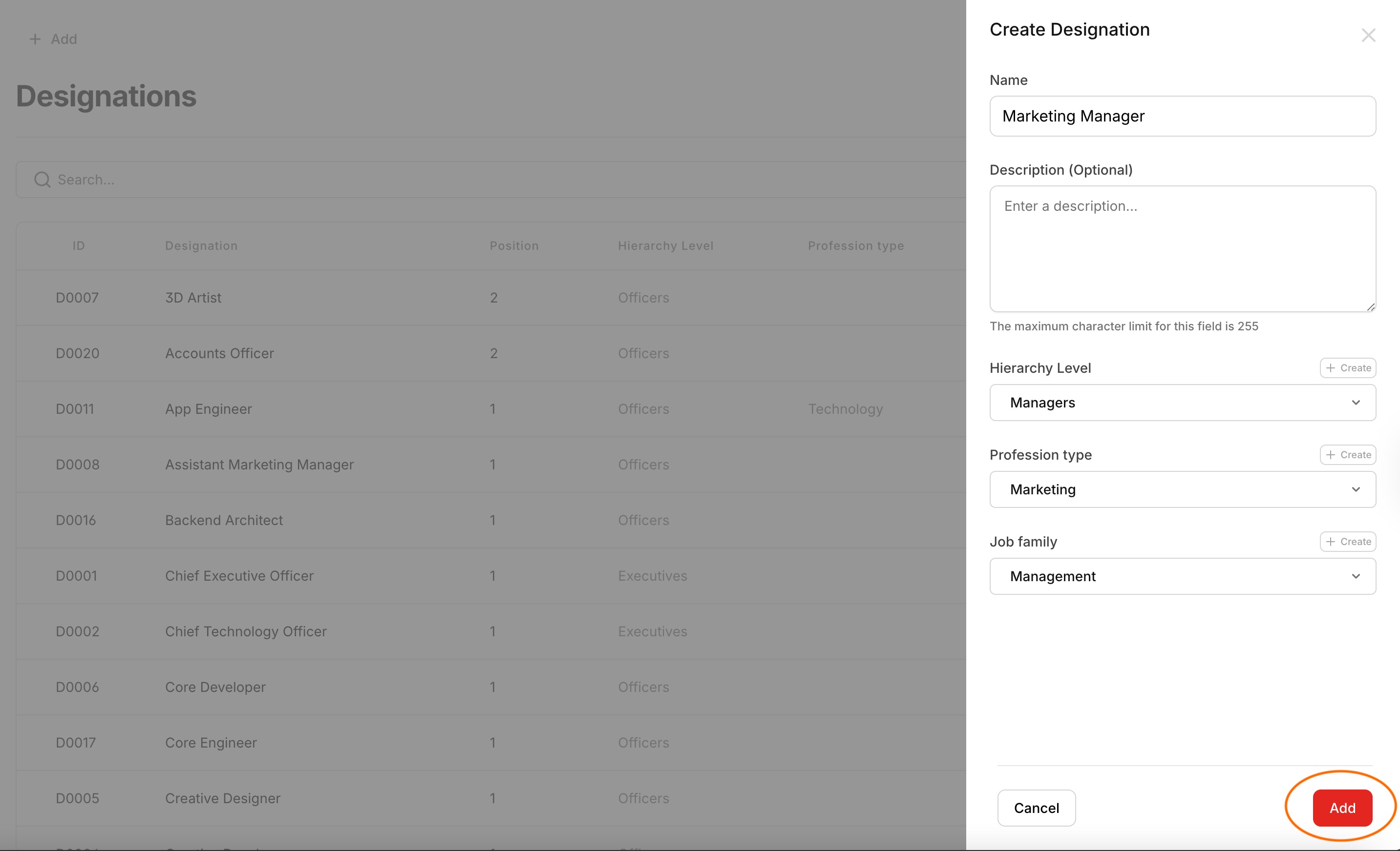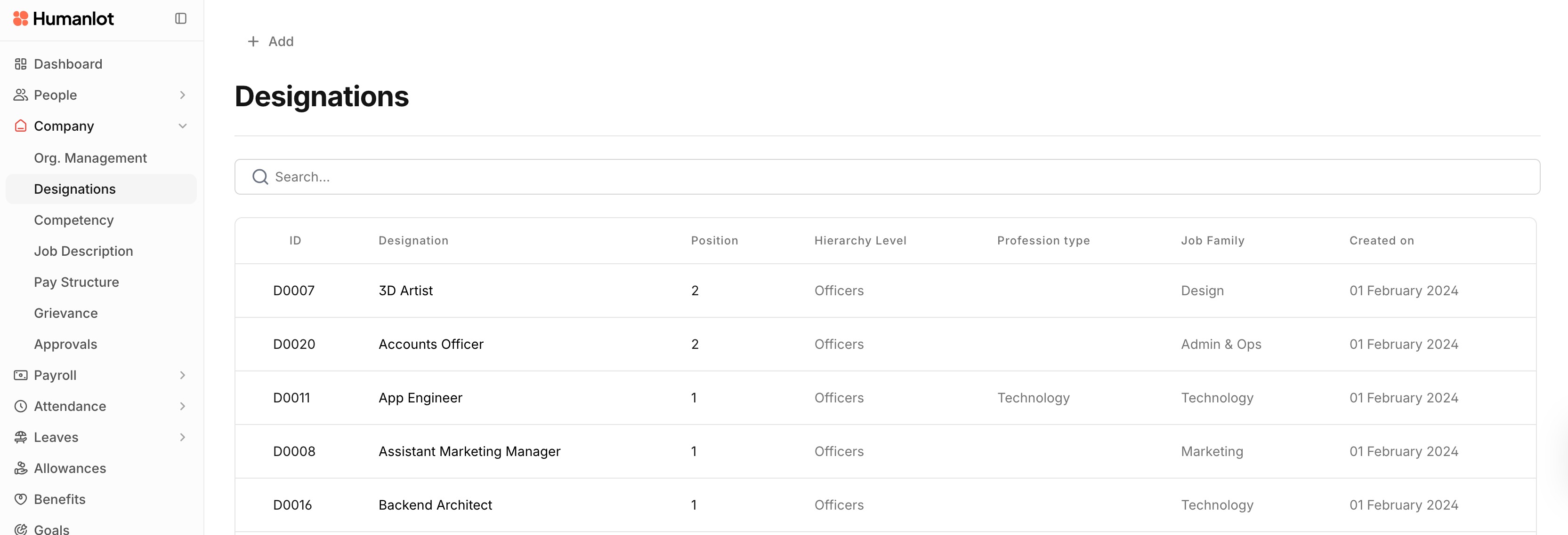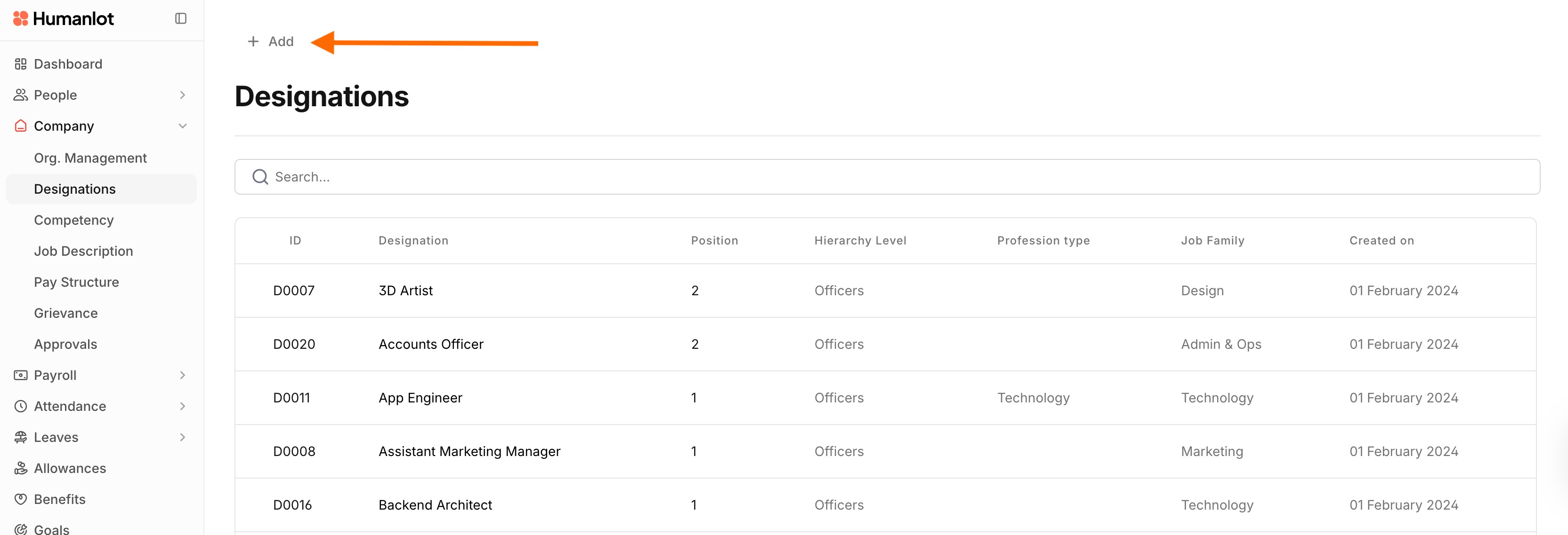Company > Designations > ‘ + Add ’